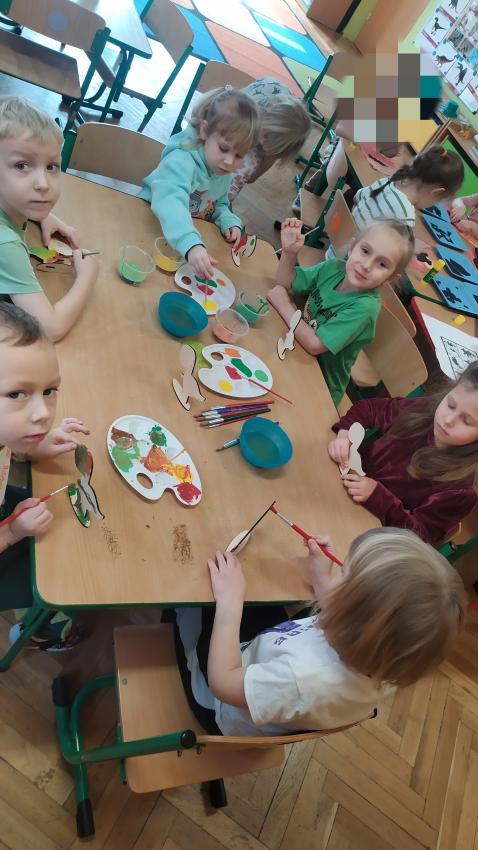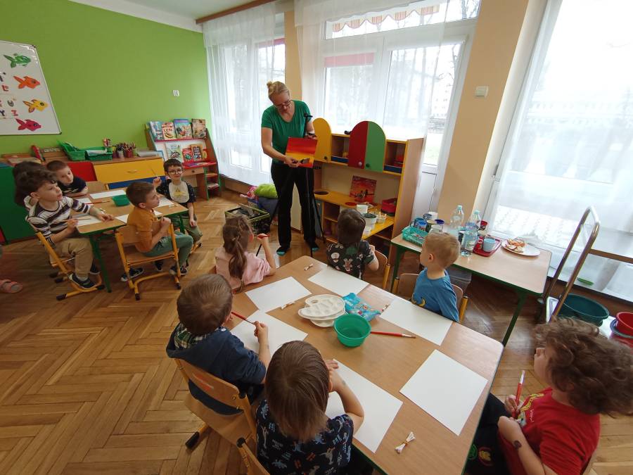 Dzieci i panie z grupy III dziękują p. Agnieszce, mamie Filipa za wprowadzenie nas w świat tajników malarstwa!:)