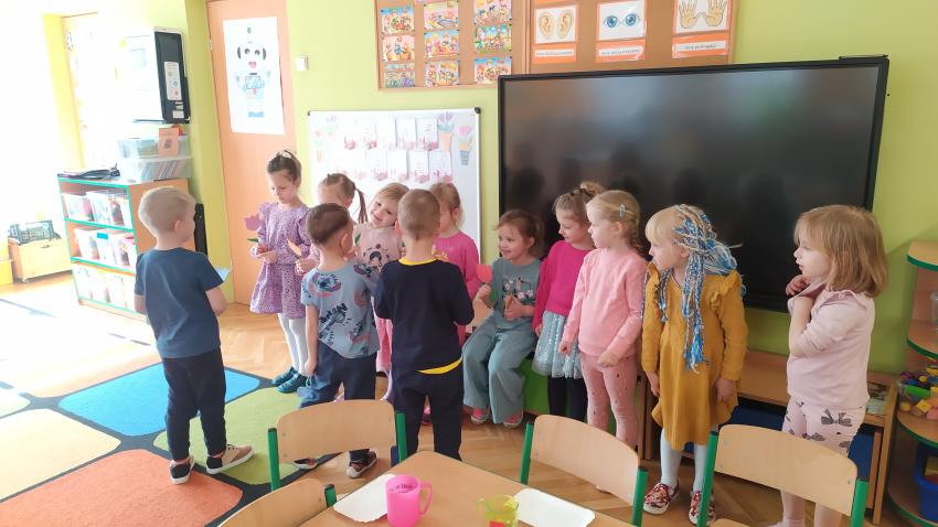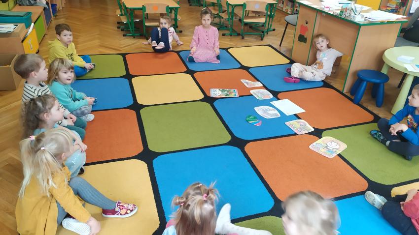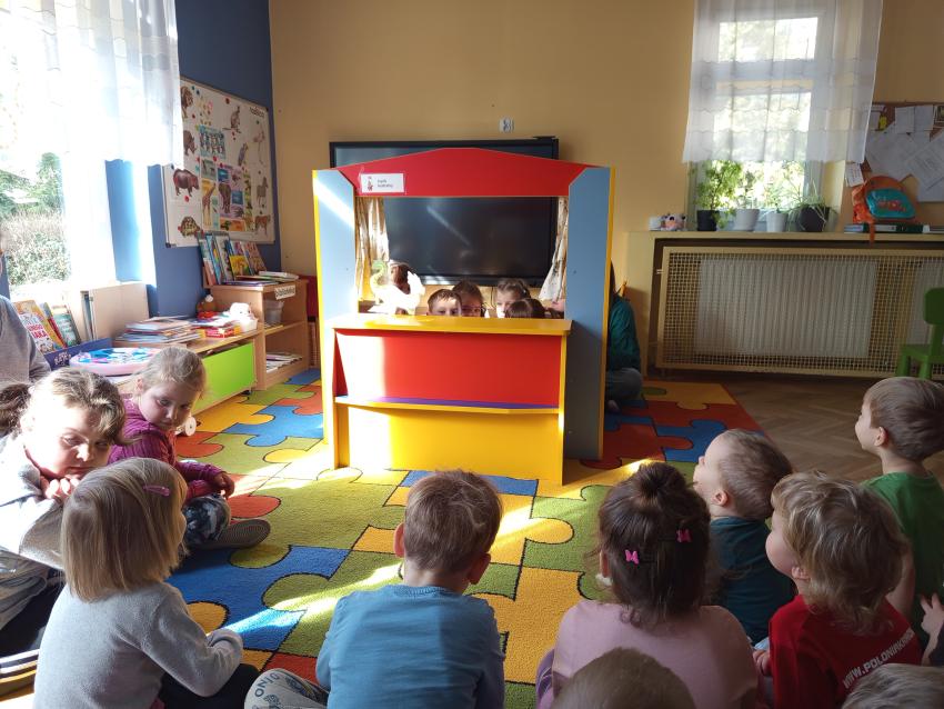 Dzieci z grupy IV zaprosiły najmłodszych kolegów na teatrzyk pt. ,,Legenda o Smoku Wawelskim"