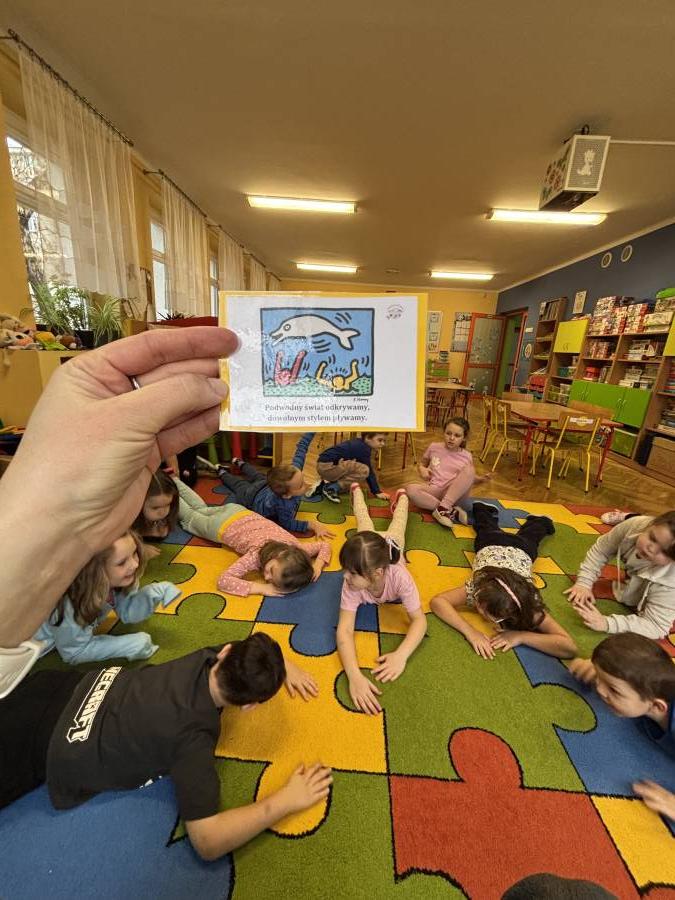 Zainspirowani dziełami Haringa tworzyliśmy dzieła z własnych ciał. Zainspirowani dziełem A. Giacometti - Idący człowiek- stworzyliśmy własne rzeźby. Stworzyliśmy również "szybki obraz? pracując wspólnie w grupach.